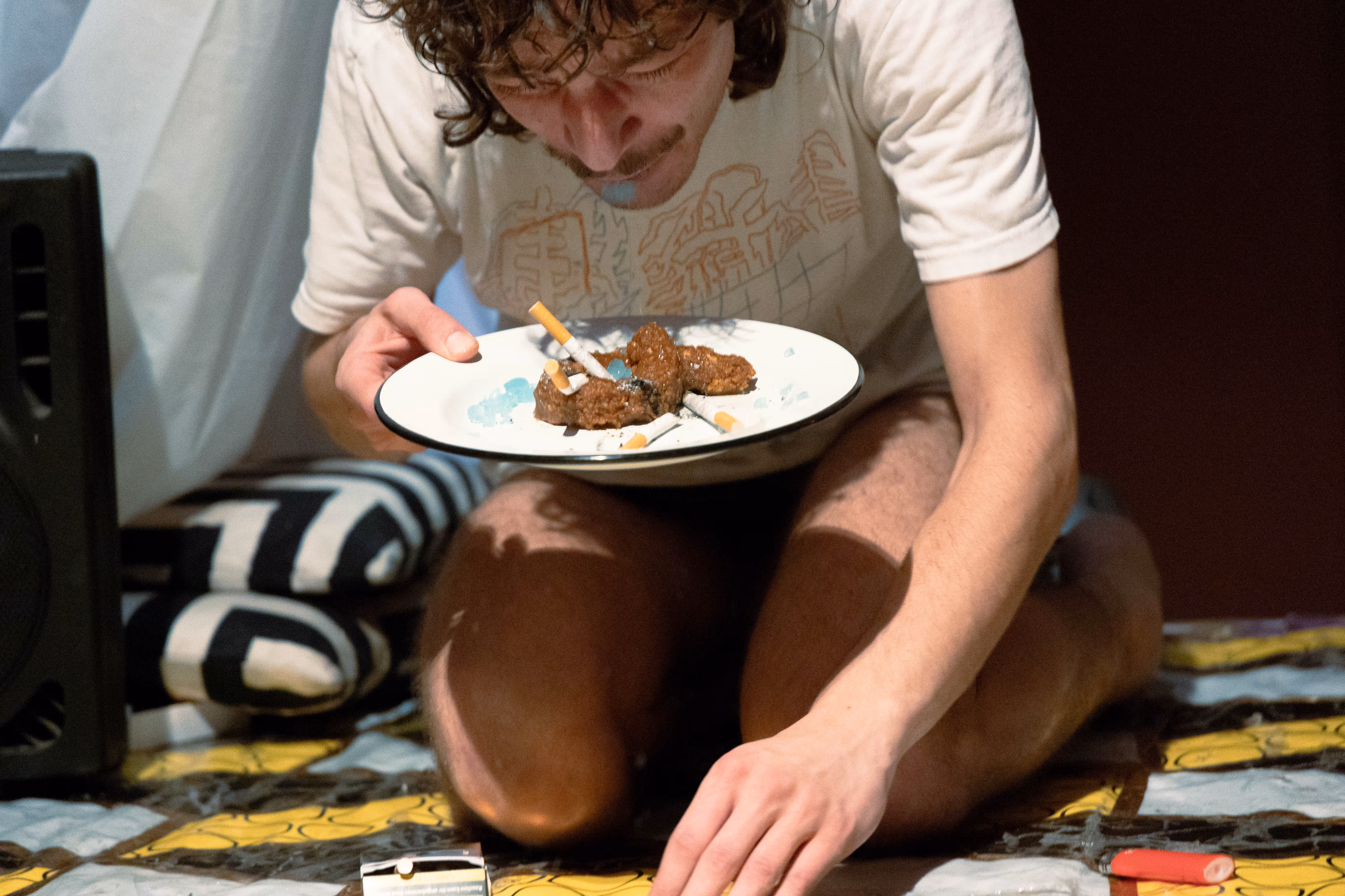 Somewhere deep inside the asshole of performance-artist Simon Van Schuylenbergh you can recently find a brand new cultural hub called ‘Anal Pompidou’. If you open-up a little more and go even deeper, the topics go further and the performances are wilder, there might be some audience participation of the worst kind, alongside an artisanale bakery and a weird collaboration with the quartier. Expect D.I.Y. special effects, meets homosexual desires, meets institutional-diharria, meets chaotic energy, meets unsubsidised hemorrhoids, meets you, the audience in the intimacy of the moment.