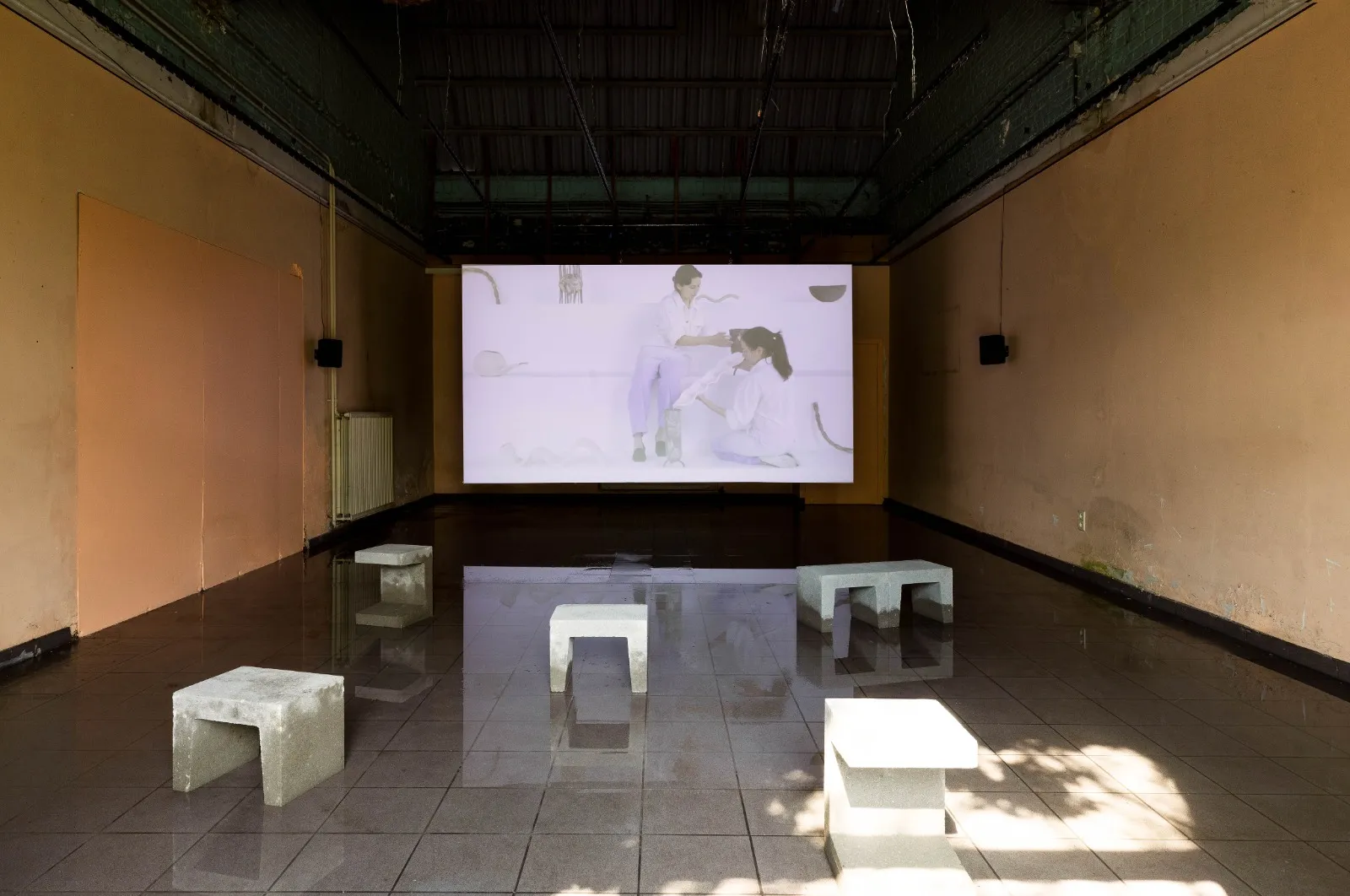 London based JAM created an immersive listening space for Horst, experimenting with the idea of loops and cycles within ambient composition and how they are reflected physically. The Antwerp & London Brussels based artist Laure Prouvost set the scene for a brand new stage in one of the industrial warehouse rooms at Asiat.
