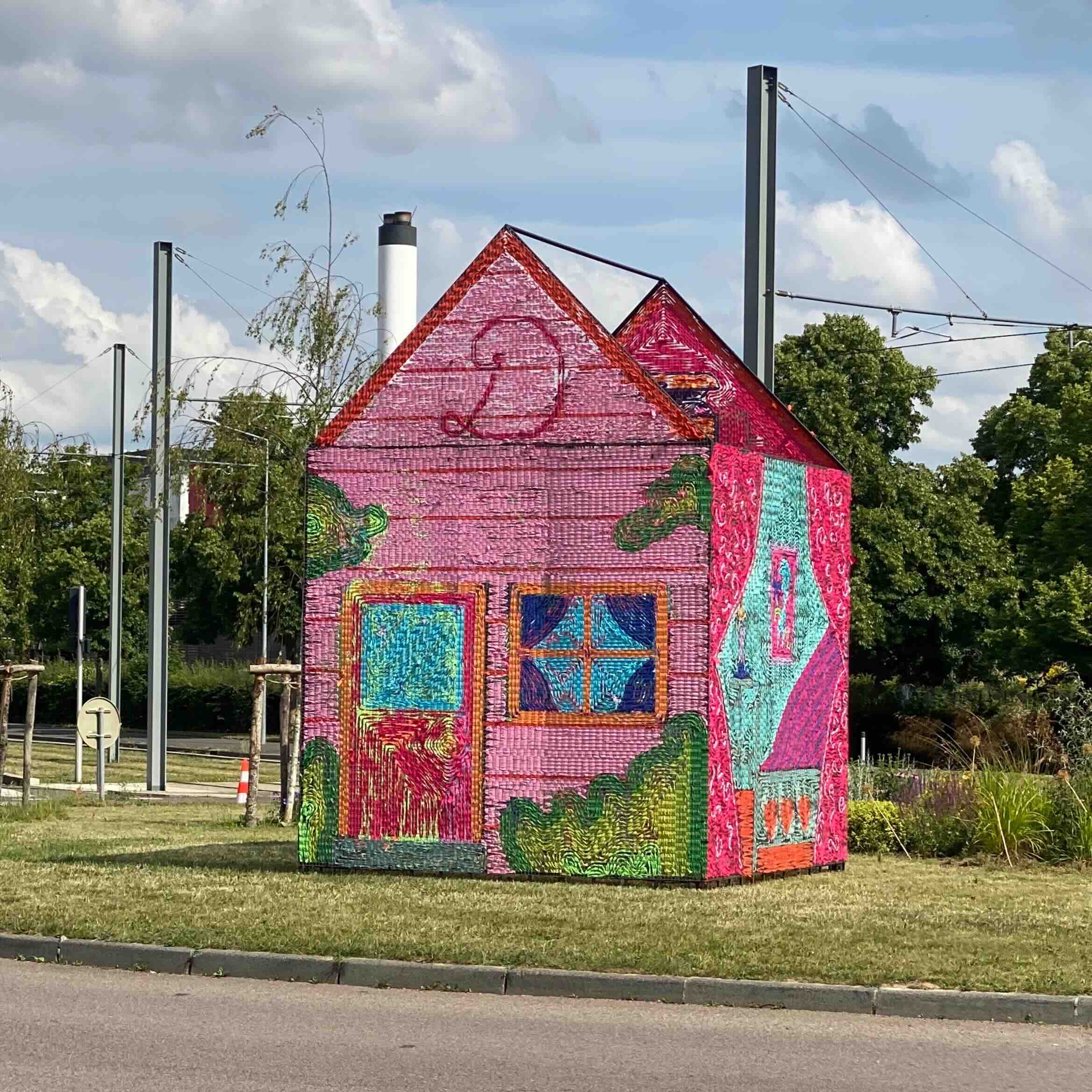 Delphine Dénéréaz lives and works in Villedieu, France. She is a resident at Atelier Vé (Marseille) and co-founder of the Monstera collective. Raised in a rural environment, she graduated in Textile Design from La Cambre before turning to Fiber Art through lirette, a medieval technique she adapts to metal and wooden supports. By freeing tapestry from a purely decorative function, her hyper-colorful works sit between craftsmanship and magic, drawing on ancestral and popular knowledge while infiltrating the symbols of late capitalism.