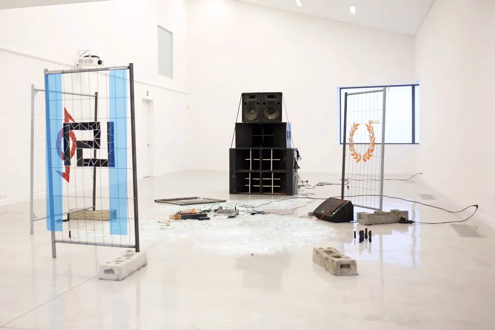 Chargée de motifs culturellement ambigus, l'installation de Daniels est assemblée avec des matériaux et des objets trouvés qui véhiculent une force et une présence convaincantes, tels que des câbles électriques et des clôtures. En contraste avec ces matériaux bruts et utilitaires, elle intègre des ornements kitsch et une végétation factice ainsi que des cloches apparemment innocentes qui servent de méthode plus archaïque de détection des intrus. En mettant en avant ces juxtapositions, Daniëls invite le public à réfléchir aux relations complexes entre l'accès, la protection et l'illusion dans la société d'aujourd'hui. Vu d'un point de vue plus large, cela peut être interprété comme un commentaire sur l'instabilité politique, les divisions sociales et les conflits géopolitiques.