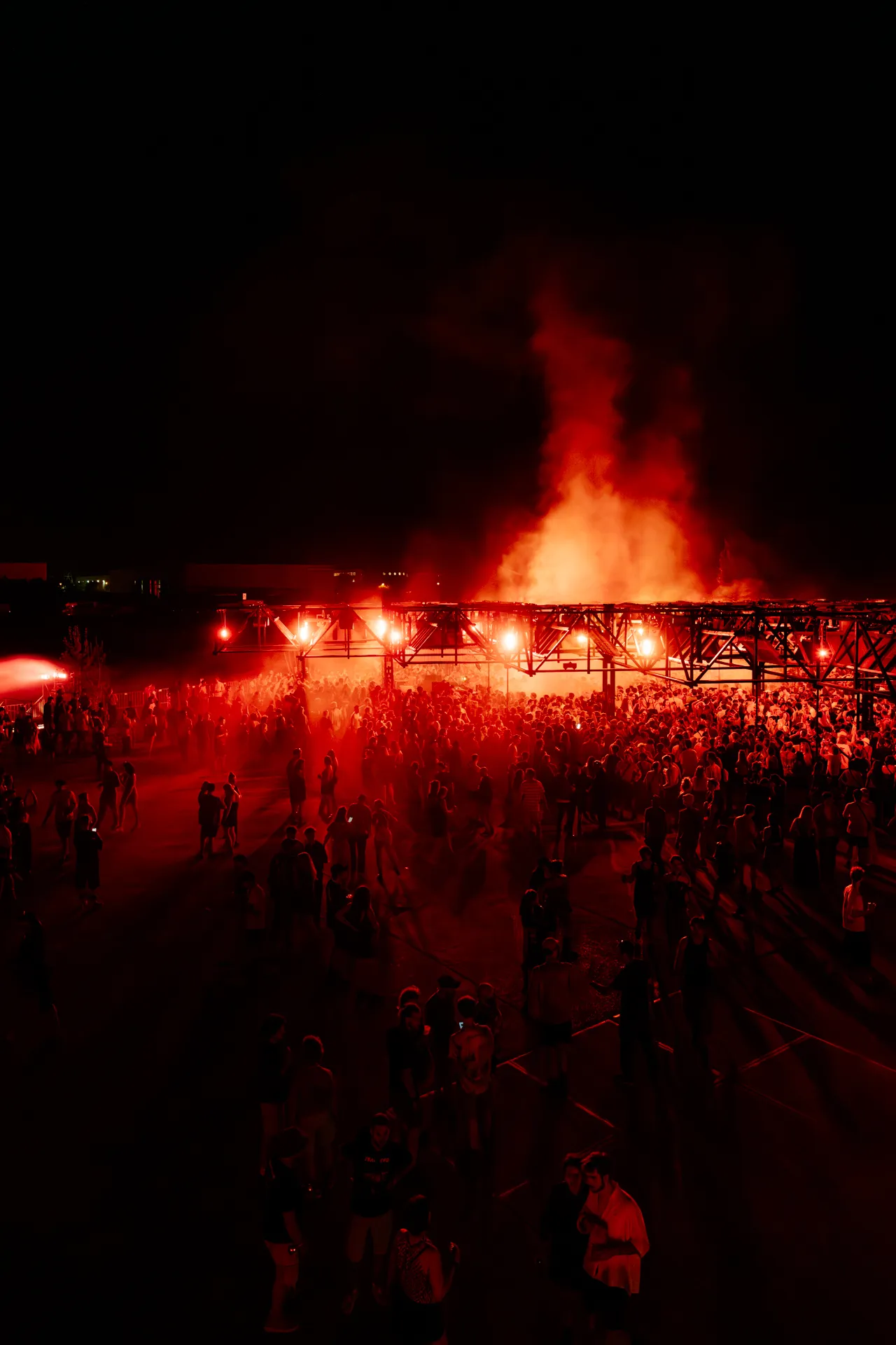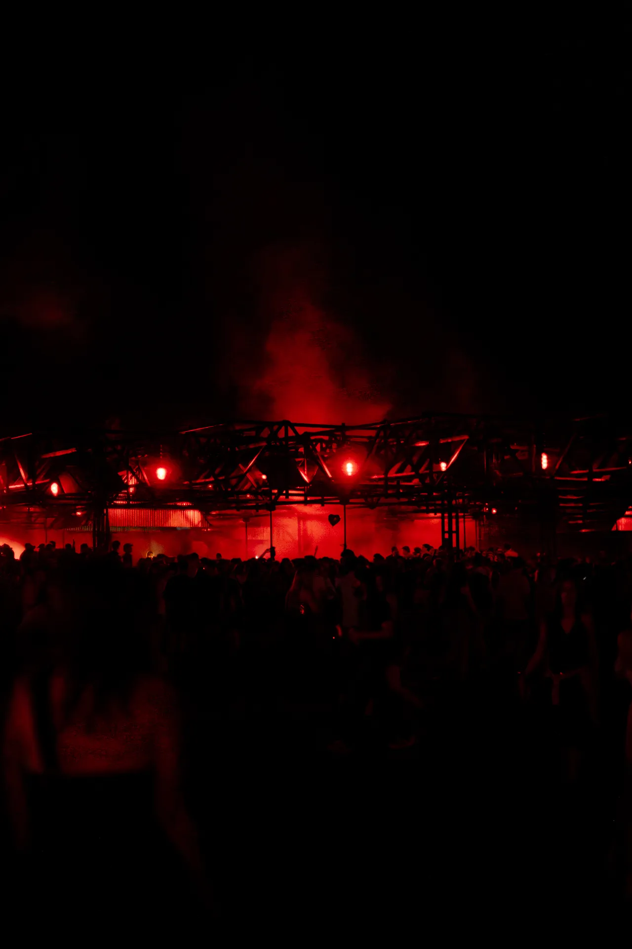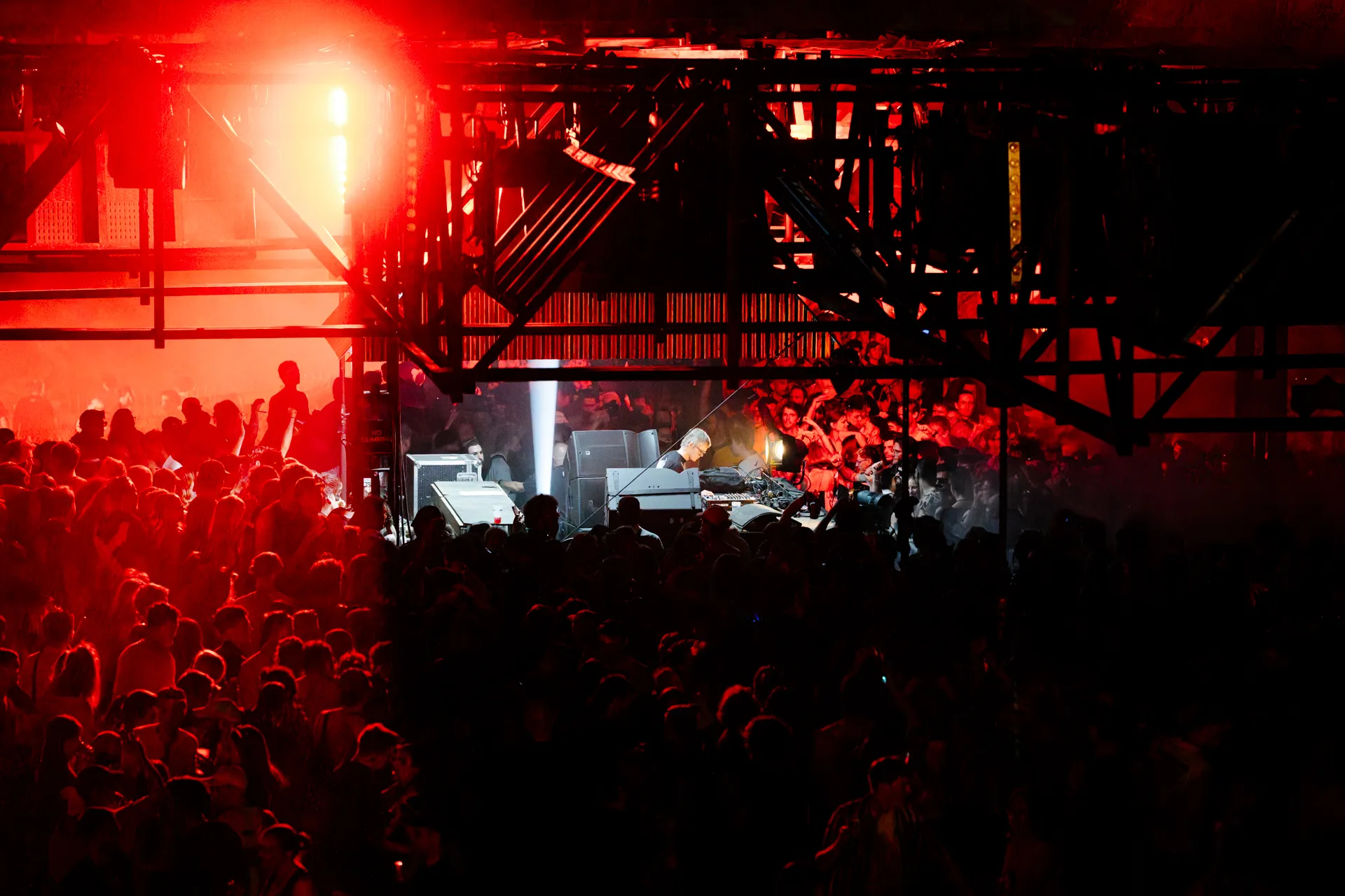 Entirely suspended above the crowd, the roof of speakers creates a close and intimate relation between the membranes and the ears, removing the attention from the performer. A democratic and multidirectional dancefloor, no one is further than a couple meters from the sound source and everyone is in the forefront.