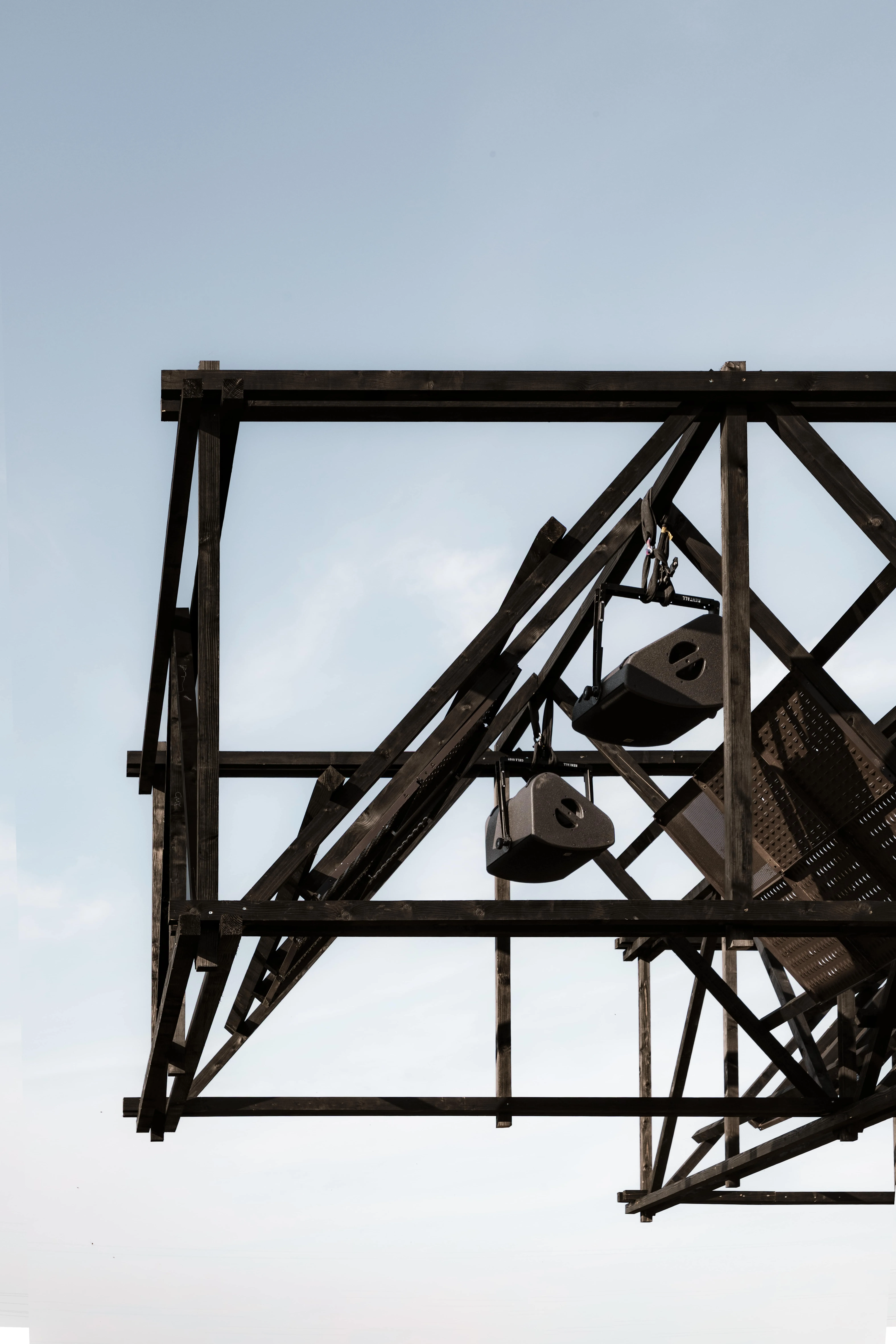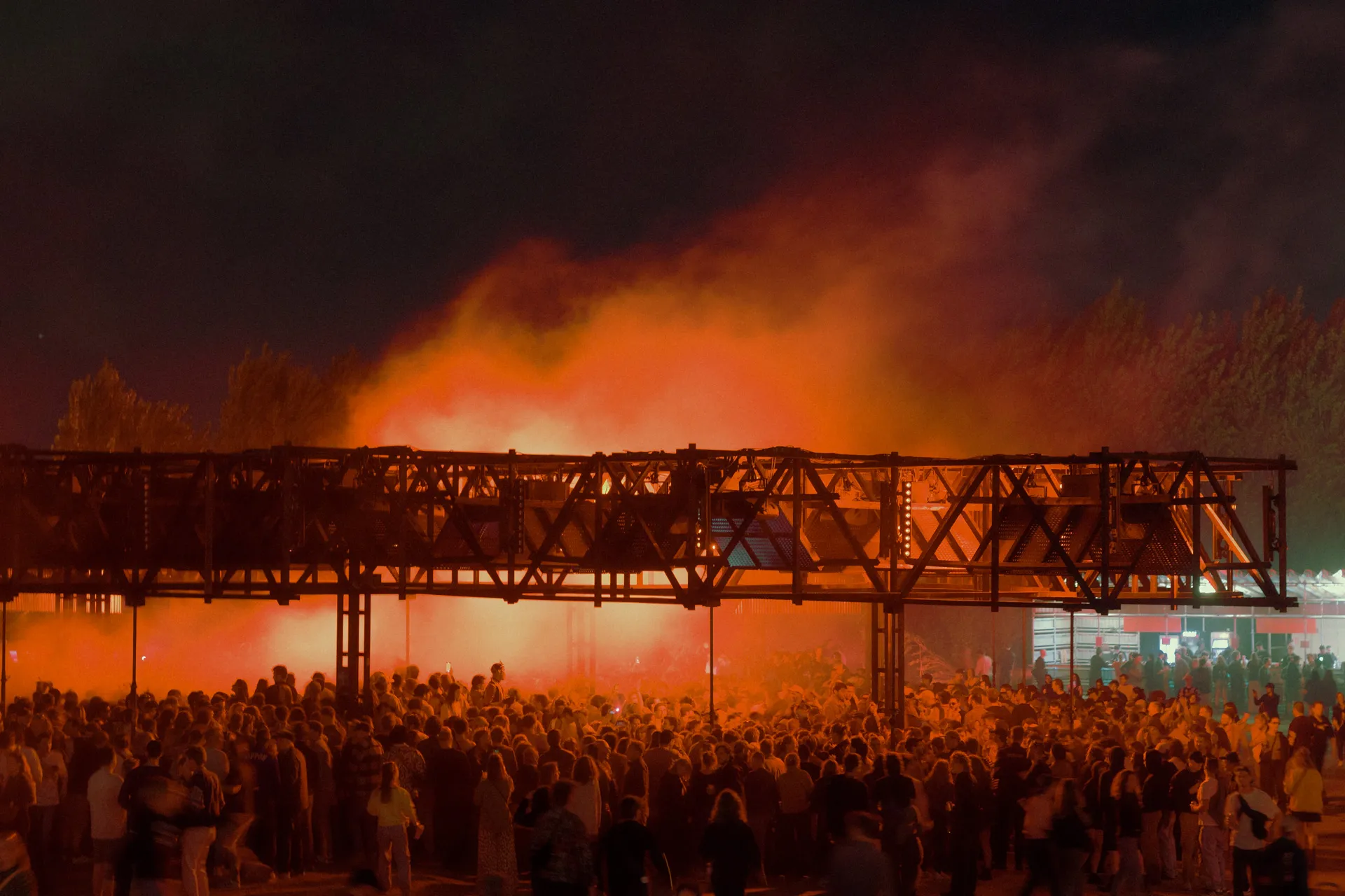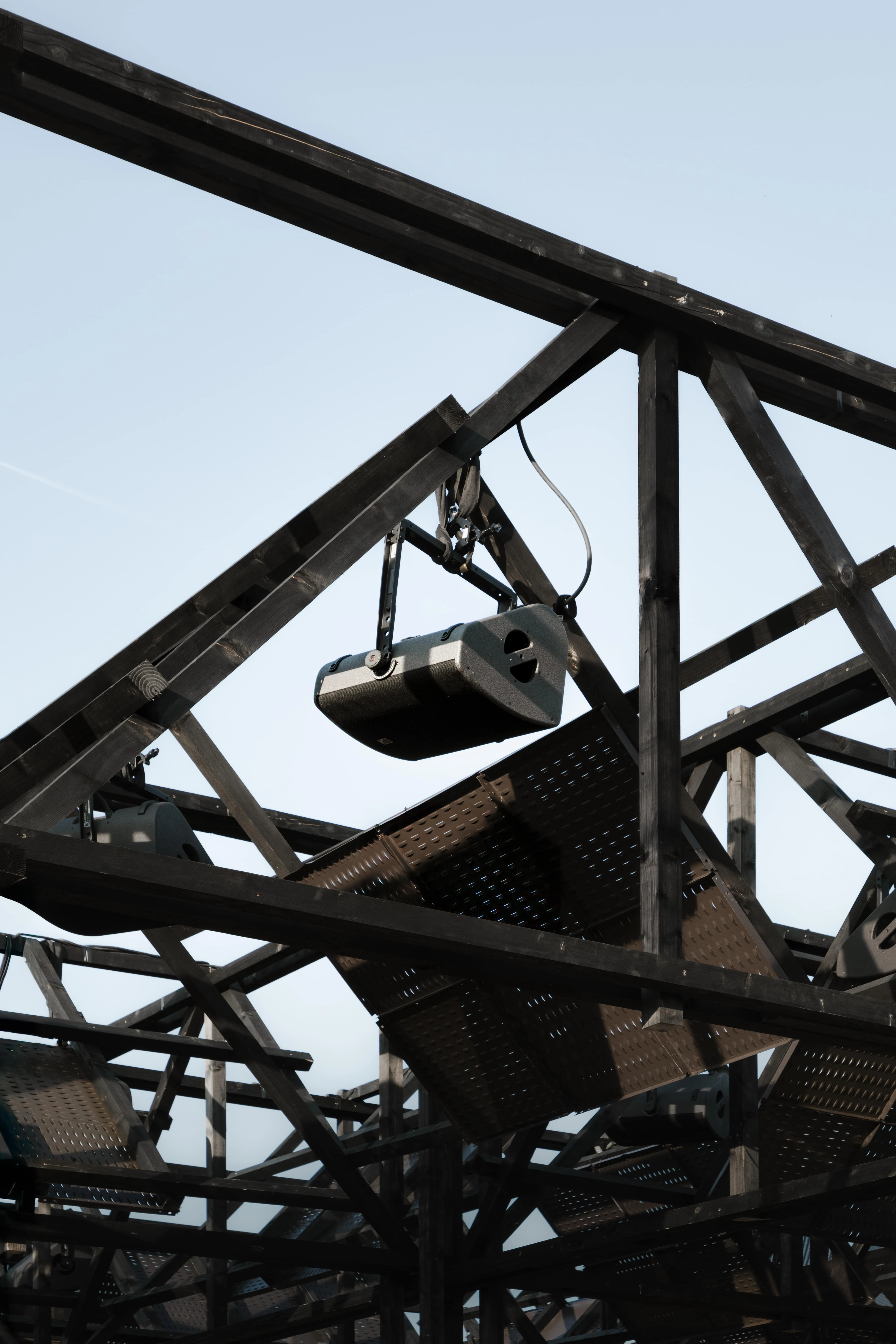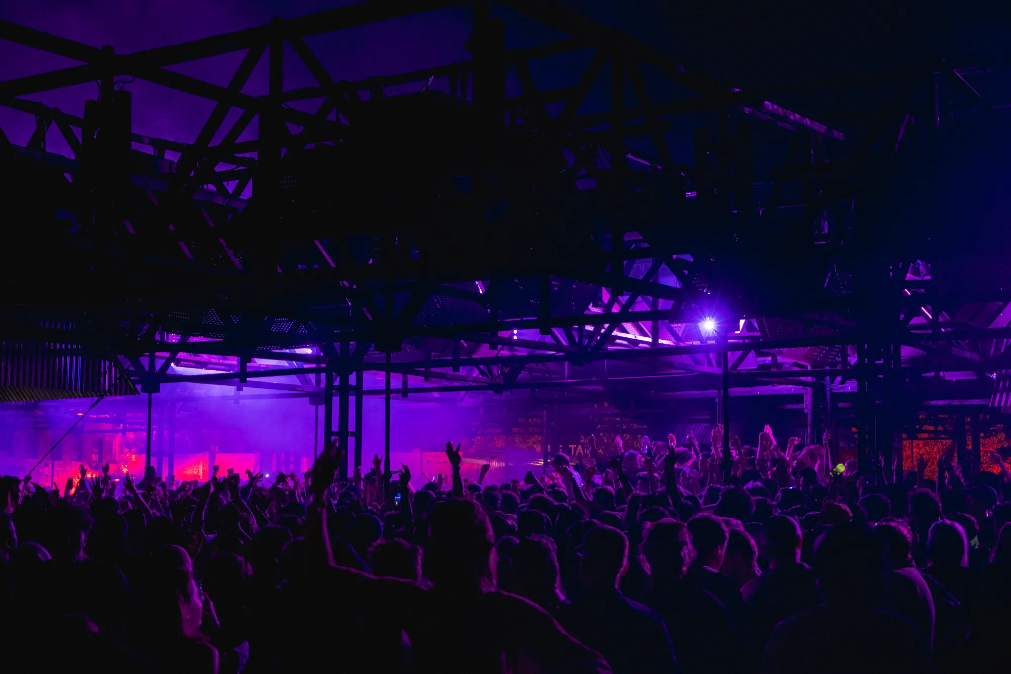 Entirely suspended above the crowd, the roof of speakers creates a close and intimate relation between the membranes and the ears, removing the attention from the performer. A democratic and multidirectional dancefloor, no one is further than a couple meters from the sound source and everyone is in the forefront.