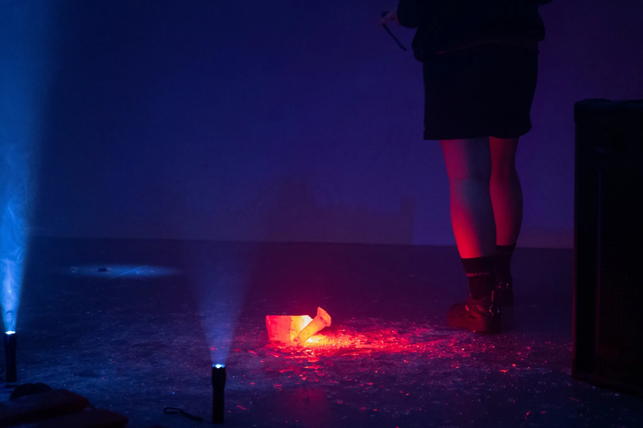 Rachel Daniëls (b. 1998, Genk, BE) is a multidisciplinary artist who combines atypical techniques and sources of inspiration in a unique visual language to construct a critical mechanism. Daniëls interprets the societal shift from religion to the economy dictating our everyday lives, and from communities spanning commonalities and cultures, to a more individualistic way of life. She challenges the boundaries of the visual arts by performing soundscapes and interventions with lights. With her work, she provoques a dialogue touching on dominant and pervasive themes in today’s society.