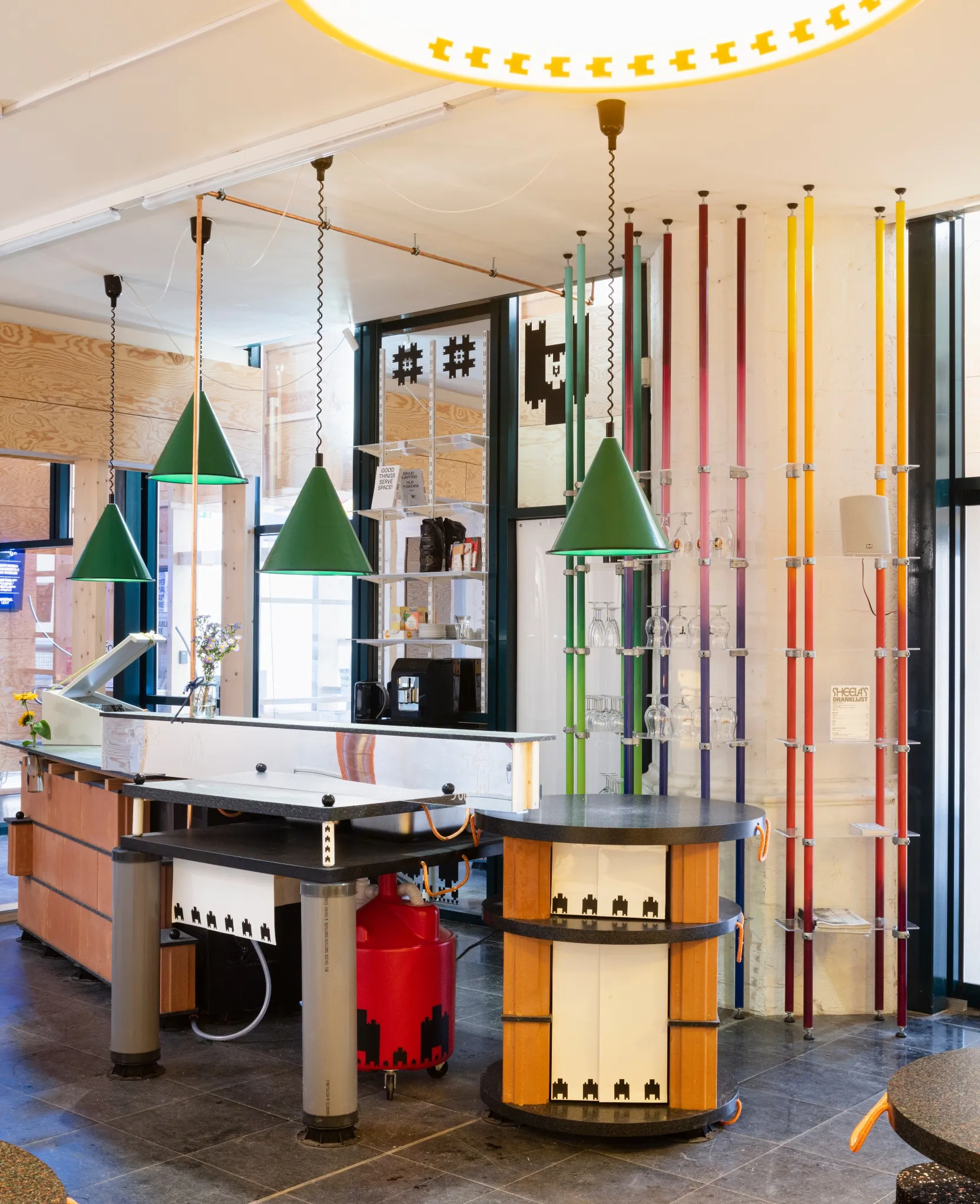 The mobile furniture allows for a flexible layout and multi-functional use of the space. The tables on wheels fit together as puzzle pieces, so that a central dance floor can appear, crowned by a room-filling chandelier which illuminates the interior. The new tapwall, as an altarpiece, is overlooking the space and ready to quench the thirsty. But the design not only honours the former purpose of this modest building: it moves beyond aesthetics and puts community at the literal centre. Hosted by Bar Bâtard the Officer’s Bar will serve as Asiat Park's central meeting place where you can enjoy drinks, food and various activities all year around. Besides this, they will also engage with social associations, starting from June onwards. Together with poverty organisation Warmkracht they will host social initiatives and workshops, supporting the local neighbourhood.