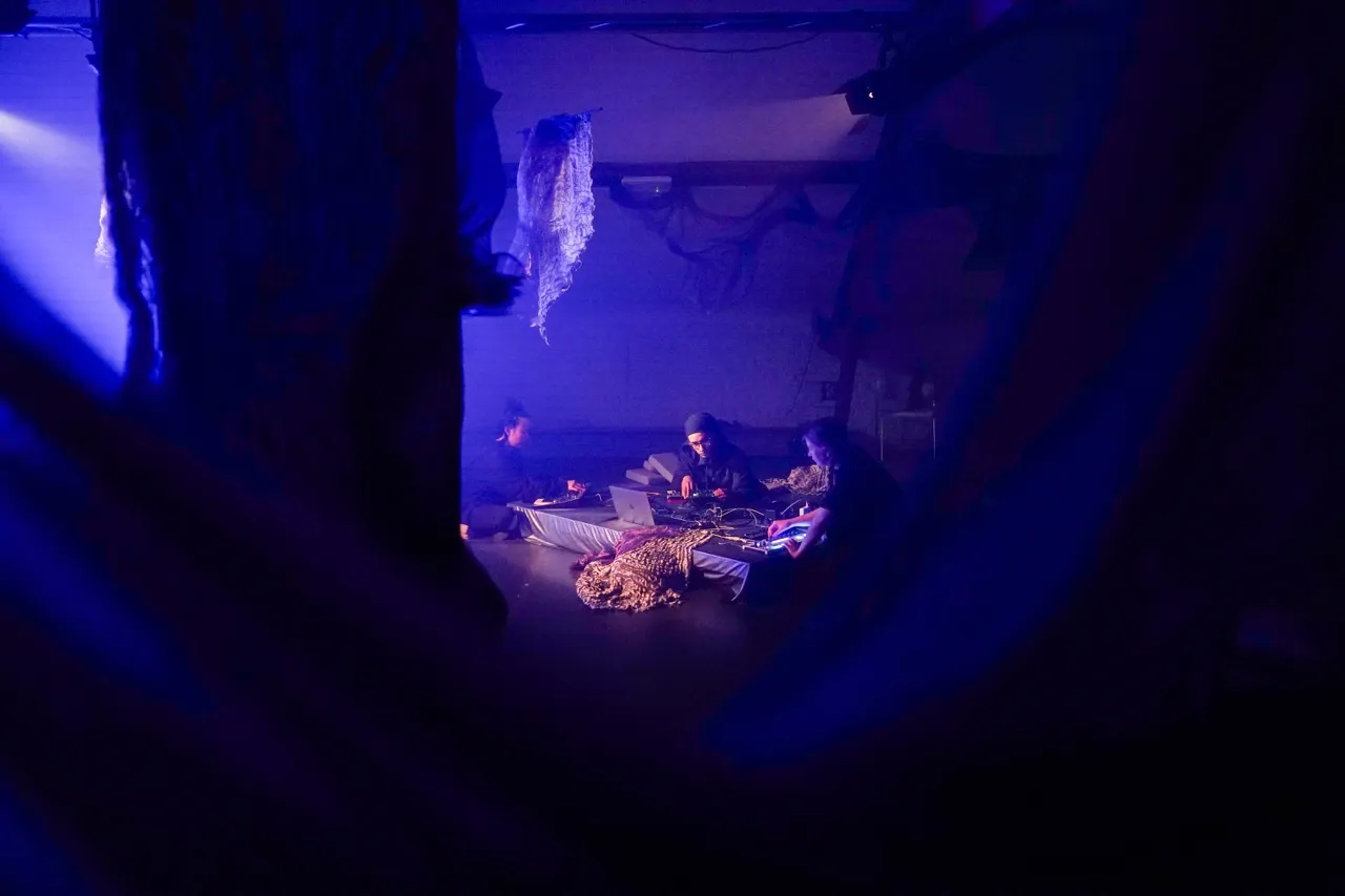 We use sound, movement, and fabric installation to guide the audience into an inner trip while sharing a collective space. The intention behind this is to play music, move to it inside a fiction that allows us to engage Generously and intentionally with the audience, and use our artistic expressions to give space and time to the people assisting to blur their thoughts to de-engage a moment from the “real world” inside this ambiguous space full of good intentions and generosity.